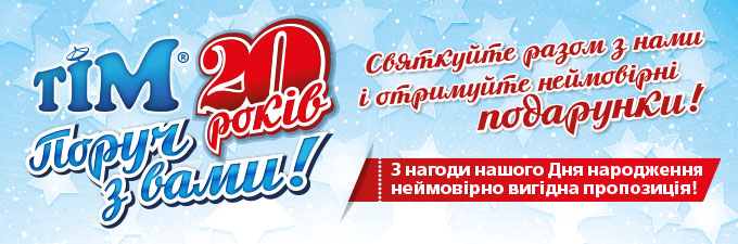 Новини: ТІМ — 20 років поруч з вами!04.10.2016 | Переглядів: 8722![]() Святкуймо День народження ТІМ разом!Стань новим абонентом ТІМ Інтернет в період з 01 жовтня до 30 листопада і отримай неймовірно приємний подарунок — цілий рік безкоштовного Інтернету на максимальній швидкості!• Нові абоненти в багатоповерхових будинках отримують в подарунок рік БЕЗКОШТОВНОГО Інтернету на максимальній швидкості до 100 Мбіт/сек! • Нові абоненти з приватного сектору отримують в подарунок БЕЗКОШТОВНИЙ рік Інтернет + Trynity TV. Підключайтесь до ТІМ Інтернет! Нашим абонентом бути завжди вигідно!Умови тарифного пакету: «ТІМ — 20 років поруч з вами!» 1. Подай заявку на підключення до ТІМ Інтернет за телефонами техпідтримки: * при купівлі акційного роутера акція на нього розпочинається після закінчення дії цього тарифного пакету. Всі додаткові деталі за телефоном 7-13-13. |