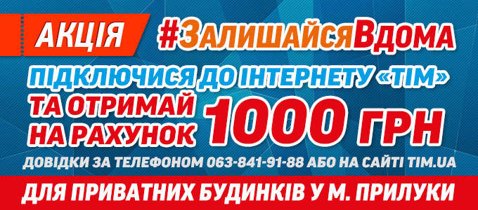 Новини: Акція! #ЗалишайсяВдома24.03.2020 | Переглядів: 5465Підключися до Інтернету «ТІМ» та отримай на рахунок 1000 грн. Діє для приватного сектору м.Прилуки. Довідки за телефоном 0638419188. Докладніше тут: https://tim.ua/actions/stayathome.html |